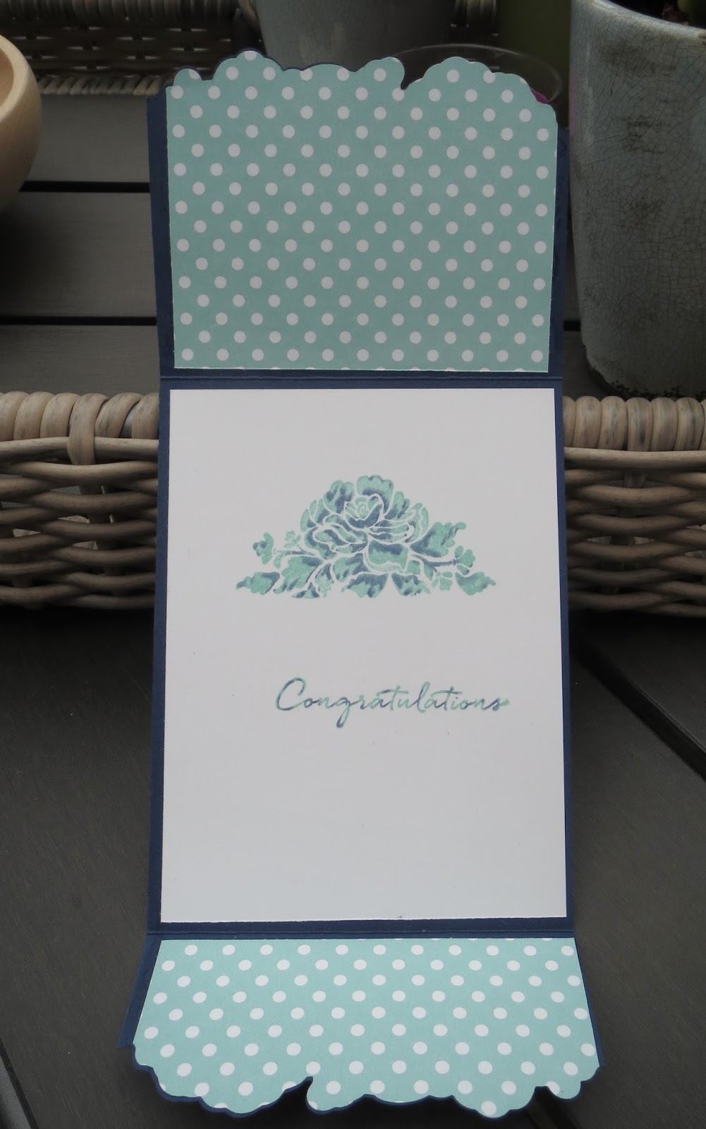 De tekst en de bloem aan de binnenkant heb ik gedaan doormiddel van de stempel met de markers in te kleuren en te stempelen. Dit geeft een heel leuk effect.